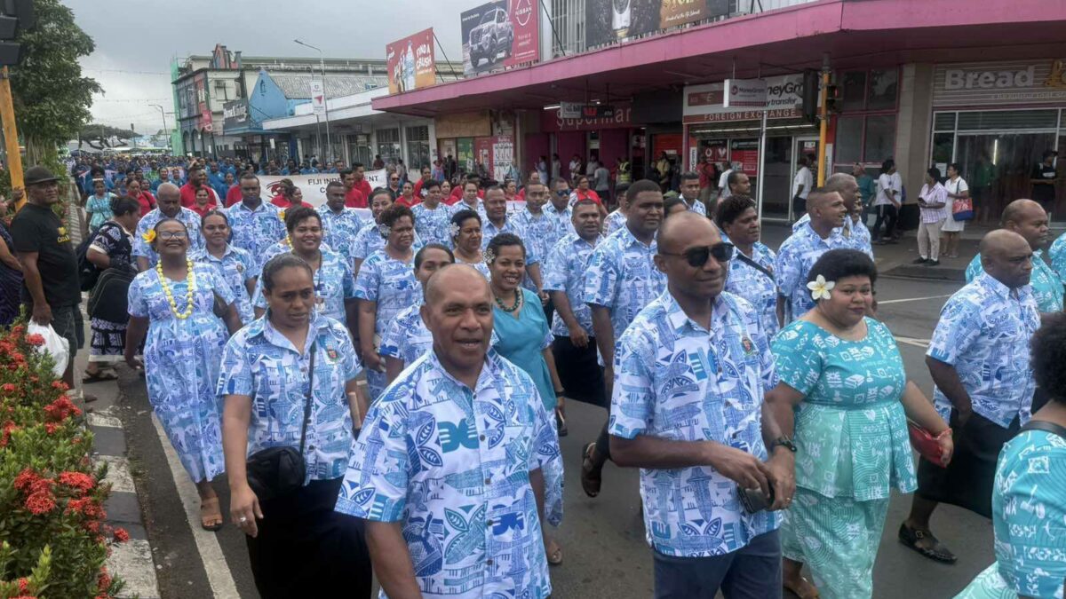 The day began with a march through Suva town where all Government ministers led their respective ministries in a bright sea of colour’s as all departments came out with their custom made bula shirts and dresses to suit the occasion.