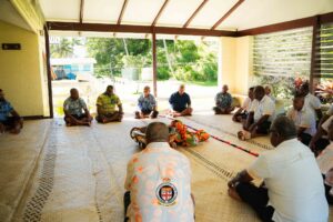 The Acting Commissioner of Corrections, Mr Sevuloni Naucukidi, together with the Deputy Commissioner of Corrections, Mr Auta Moceisuva, and a delegation of senior officers, visited Turaga na Tui Kaba na Vunivalu, Ratu Epenisa Cakobau, yesterday on Bau Island to present a formal traditional vakavinavinaka.