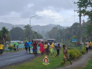 Villagers ran onto the road to greet the FCS party made up of officers from Naboro and the Assistant Commissioner Operations, Alevio Turaga and OC Minimum, ASC Atu Maiono.